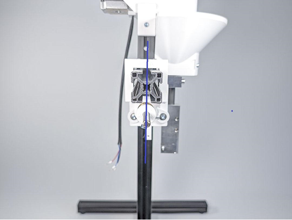 Schieben Sie das Aluprofil hindurch, um zu testen, dass alles passt. Sollte sich das Aluprofil nur sehr schwer durchschieben lassen, können Sie alle Schrauben, welche die Kugellager befestigen, eine Umdrehung aufdrehen, dann das Aluprofil hindurch schieben und dann die Schrauben wieder fest drehen.