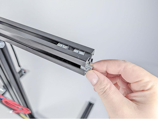 Zwei Nutensteine M4 in die obere Nut einführen.