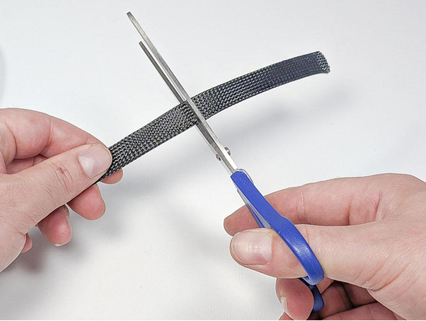 Den Geflechtschlauch auf 90mm ablängen.