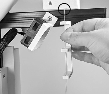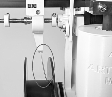 08.2.5 Schieben Sie das Filament durch die Löcher in der Führung unter der Zieheinheit.