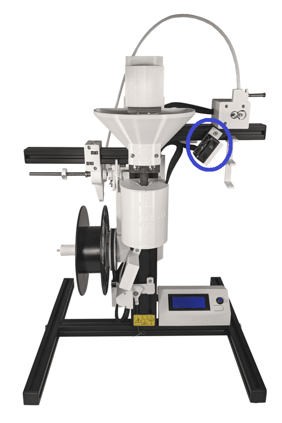 Verbinden Sie das Netzteil mit dem mitgelieferten Netzkabel. Schließen Sie das Netzkabel an eine Steckdose an, dadurch wird der Extruder eingeschaltet.